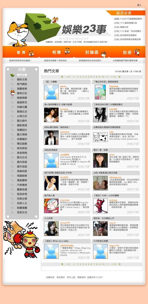 娛樂23事PIXNET 痞客邦 部落格首頁 (20070724).jpg